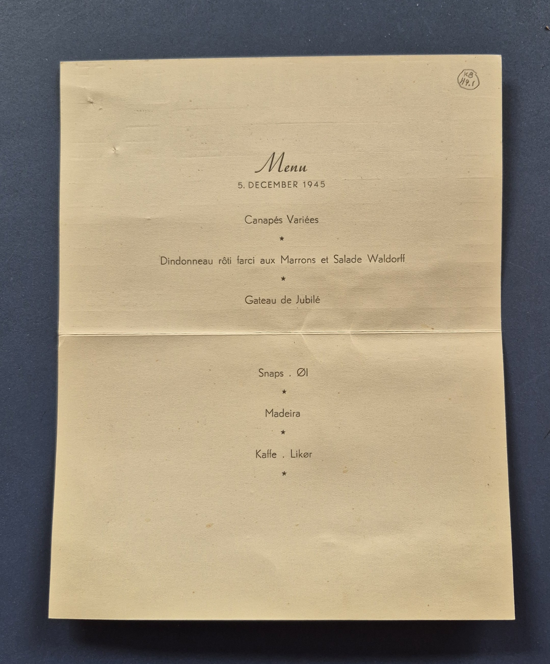 For- og bagside samt midtersider af menukort fra restaurant Karnappen. Menu fra 5. december 1945.