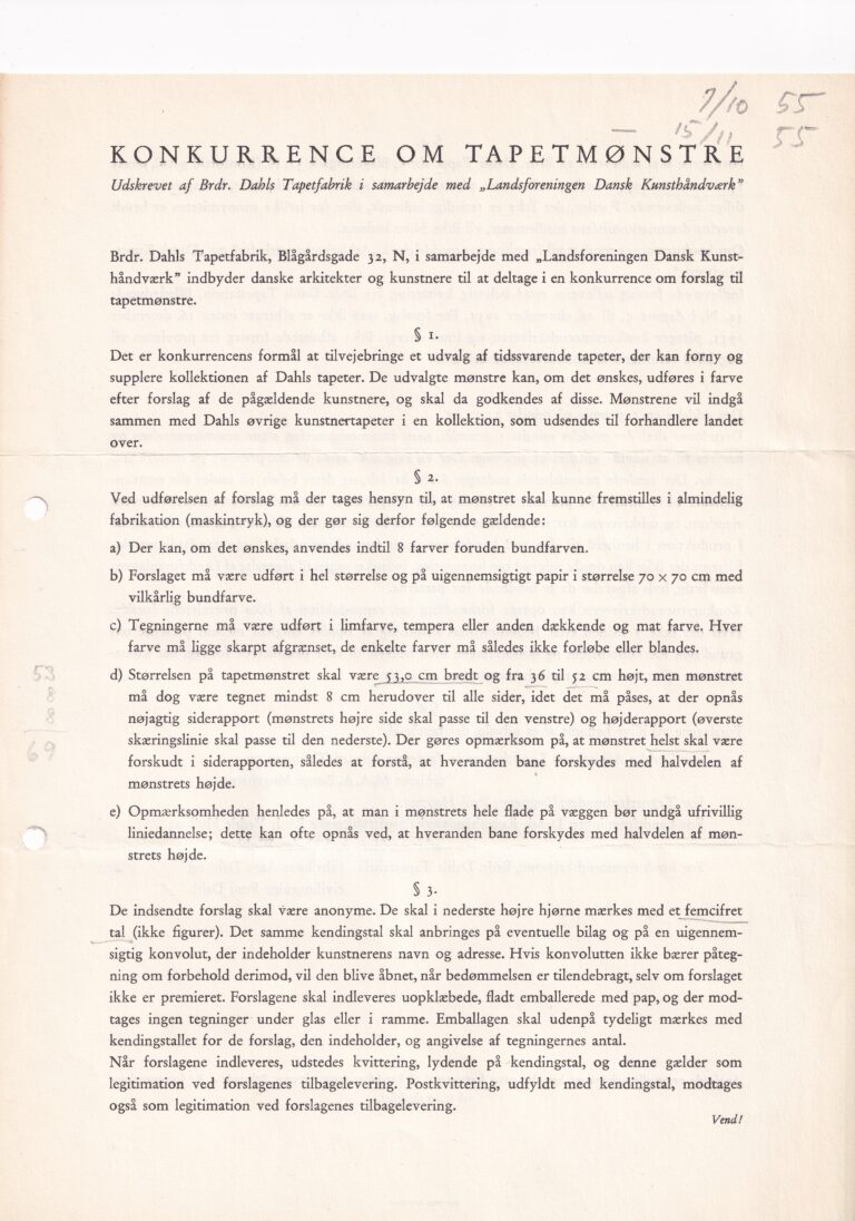 Breve. BRD. Dahl tapetfabrik i samarbejde med Landsforeningen Dansk Kunsthåndværk og Kunstindustri