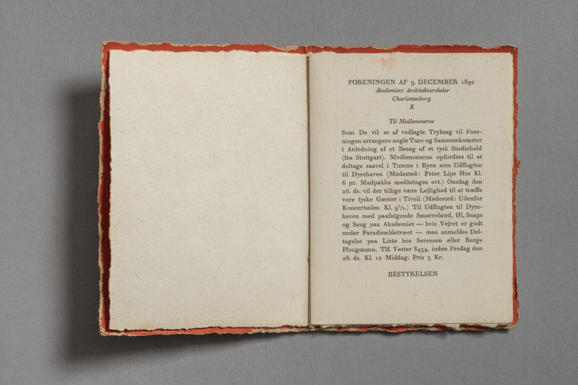 I anledning af tysk studieophold fra Stuttgard. Udsendt af bestyrelse fra Foreningen af 3. December 1892.